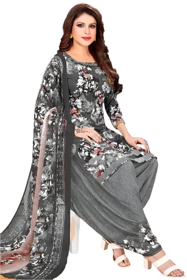 Create your perfect outfit with this Crepe Printed Unstitched Dress Material in a classy grey tone. Made from soft and flowy crepe fabric, this unstitched material gives you the freedom to design and tailor your outfit as per your style—be it a kurti, top, tunic, or Indo-western wear.