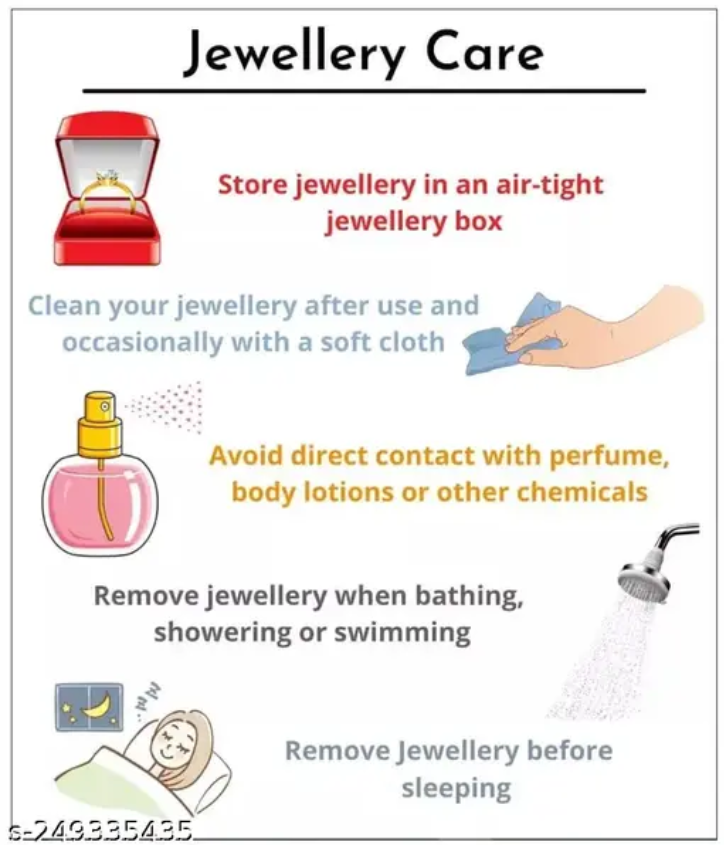 Care Instructions: Avoid direct contact with water, perfume, or sweat. Wipe with a soft cloth after use.